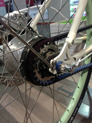 Belt drive! Custom Faraday dropouts, Gates centertrack belt, Alfine 8 hub, and Shimano cross discs. It rides as nice as it looks.