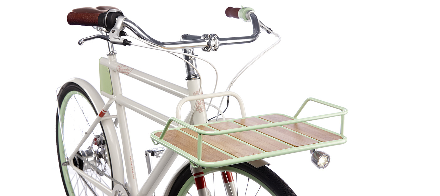 Our detachable, frame-mounted front rack makes it easy to carry up to 25 pounds of gear and groceries. Because the rack is rigidly attached to the bike's frame, heavy loads won't make it awkward or unstable to steer the front wheel. And an alternate headlight mounting location beneath the rack keeps your headlight unobstructed by cargo.
