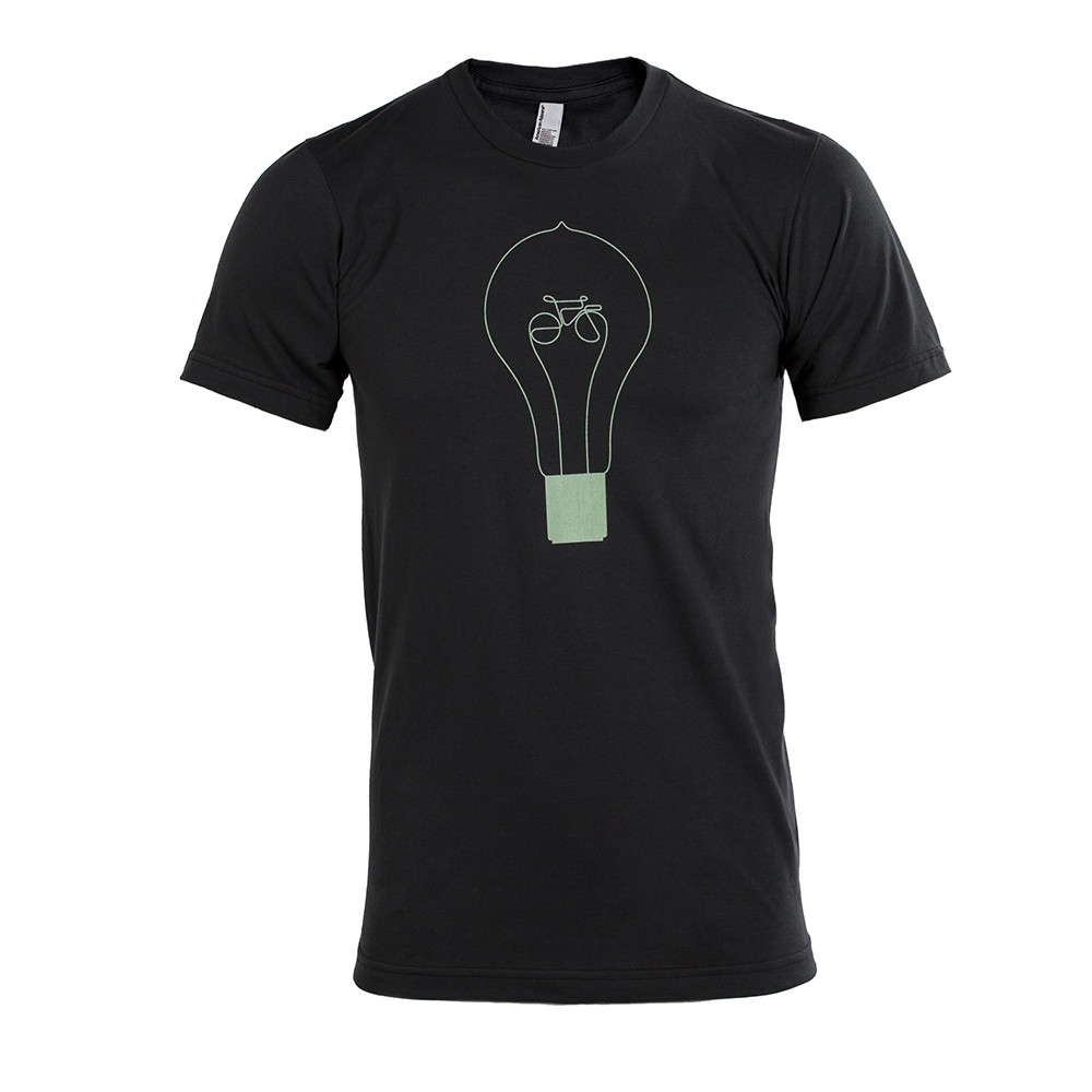 The Faraday Porteur is the result of a “lightbulb” moment, when we realized that an electric bicycle can be work of art on wheels. This t-shirt commemorates that moment, with the classic Faraday logo integrated with a lightbulb.